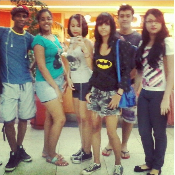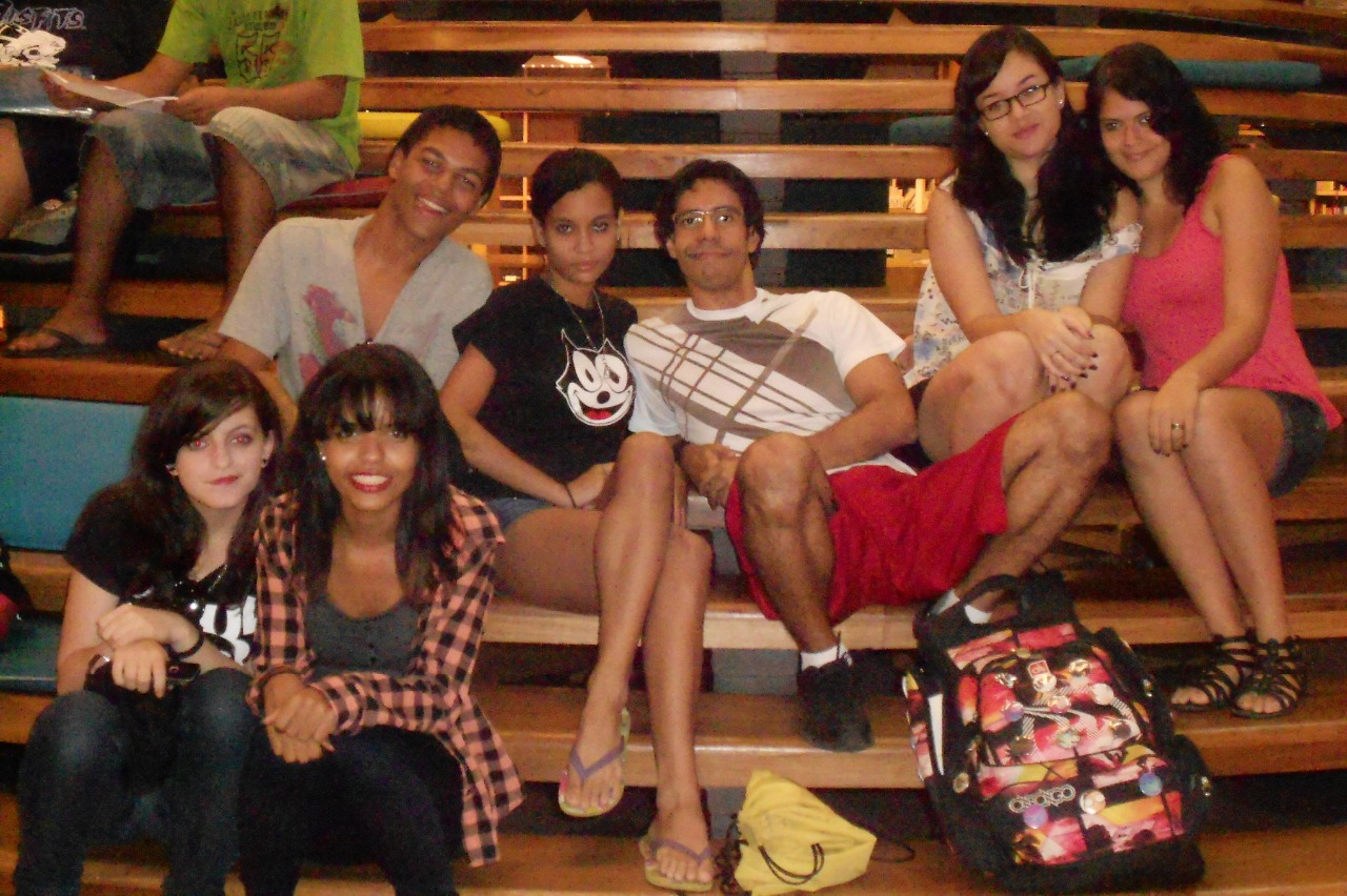 No alto: Tom Vieira, Anne Aquino, Dino Cunha, Lua Serafim e acompanhante.
